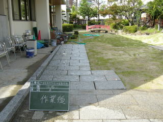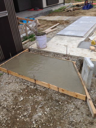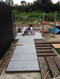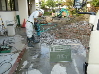 駐輪場改修のため古い舗装を撤去後御影平板を施工し土間コンクリートを打設