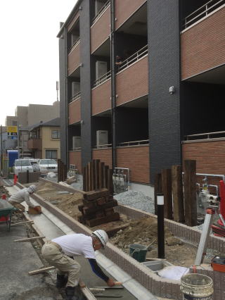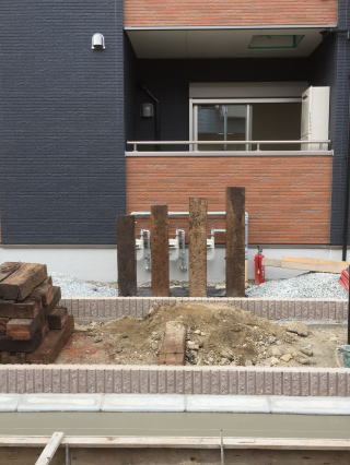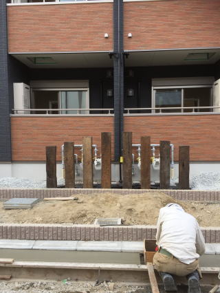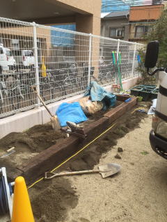 国産中古の枕木を使っての花壇制作 良質土をブレンド 料金40000円