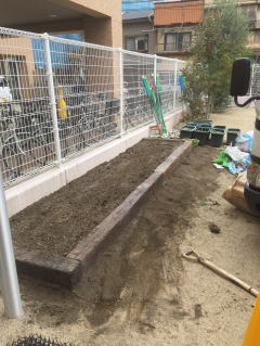 保育所様での花壇新設 草花でも育つように良質培養土をブレンド 料金30000円