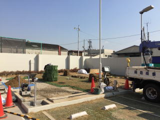 ガソリンスタンド様で100uほどの植栽マスを改修して10トン車でも乗り入れが可能にできるとともに
