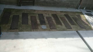 既存の芝もメンテナンス不足で生育が悪いため全面撤去後に張芝