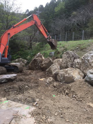 ラフター+ミニユンボ1,5トンで何とか抜きました